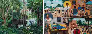 Plusieurs artistes présentés confirment que tous sont concernés par la protection de l’environnement et le quotidien villageois : JEAN-NOËL GANZO, BERNARD KOSSI, PLACIDE VALANGUE, etc.